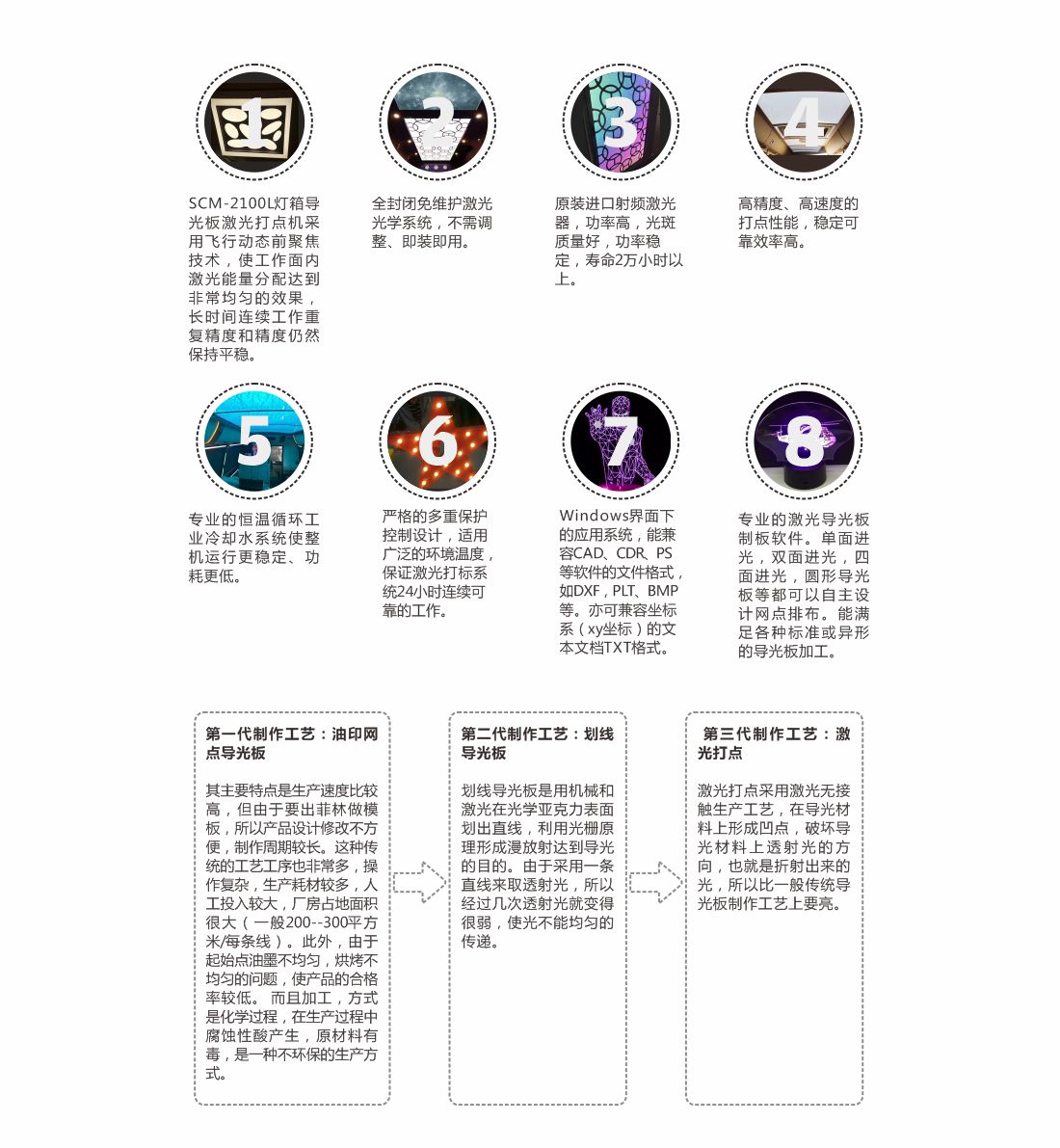 現(xiàn)如今,廣告導(dǎo)光板、導(dǎo)光板超薄燈箱、導(dǎo)光板激光加工設(shè)備——三工光電導(dǎo)光板激光打點(diǎn)機(jī)強(qiáng)勢(shì)出擊,廣泛應(yīng)用于商場(chǎng),超市、銀行、連鎖店、飯店酒樓等地方。導(dǎo)光板超薄燈箱具有節(jié)能、超薄、方便、均勻等特點(diǎn),未來它將持續(xù)進(jìn)化,為我們帶來更多的驚喜。下面我們來看看燈箱行業(yè)導(dǎo)光板激光打點(diǎn)解決方案: