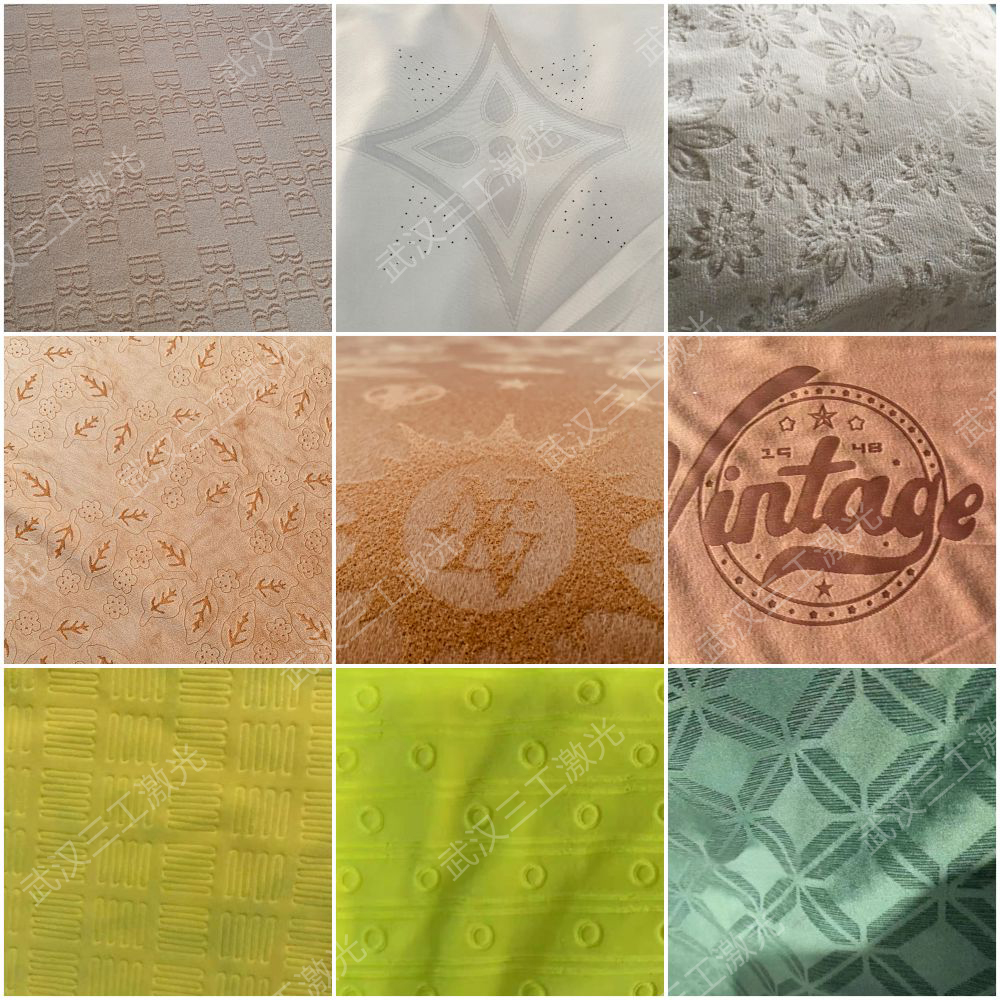 激光燒花,通過穩(wěn)定的激光能量控制和精確地掃描系統(tǒng)的配合,在布料表面進行熱加工,形成深淺不一的各種圖形。主要適用于面料紡織染色后整理,例如應用在家紡、鞋材、玩具上面的經(jīng)編短絨布以及應用在服裝面料上面的梭織布、牛仔布的雕花,應用在內(nèi)衣、運動服、健身衣上面的緯編針織布的雕花和打孔。