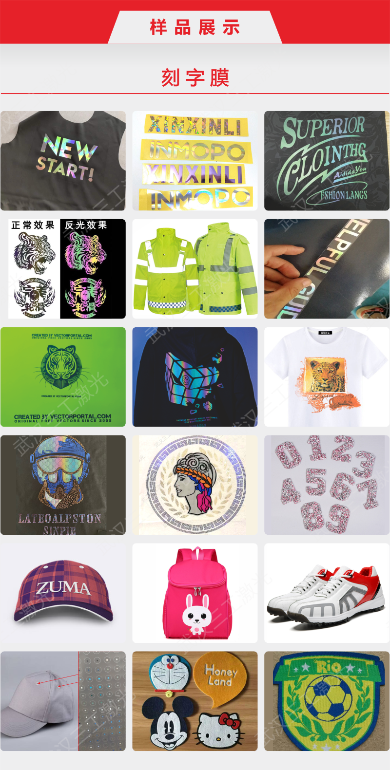 1、服裝輔料加工行業(yè),如PVC刻字膜、TPU刻字膜、PU亞光刻字膜、夜光刻字膜、鐳射軟金屬刻字膜、噴繪打印膜、反光刻字膜、植絨刻字膜、金蔥刻字膜、反光絲印膜、弱溶劑打印膜、裝飾膜、皮標、布標等材料。