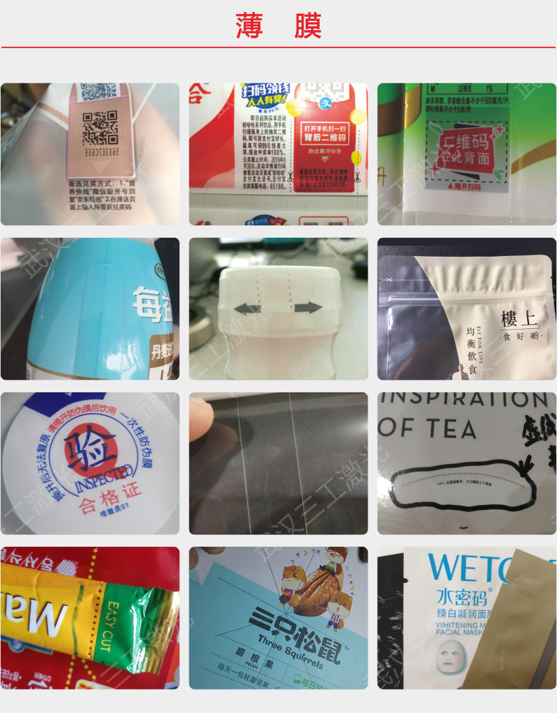 1、適用材料廣,刻字膜、不干膠、薄膜等卷材均可激光打標和模切;